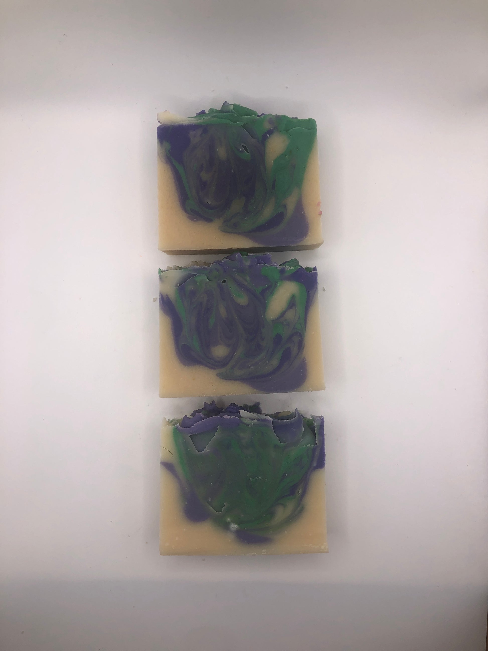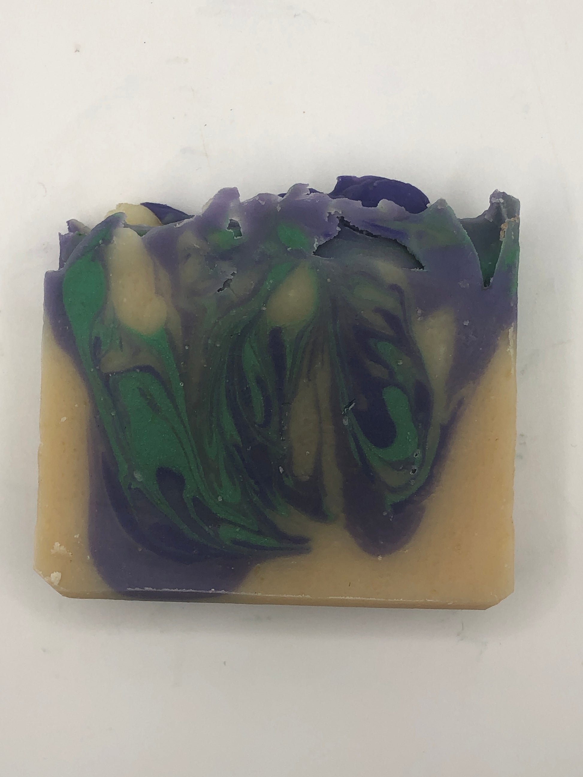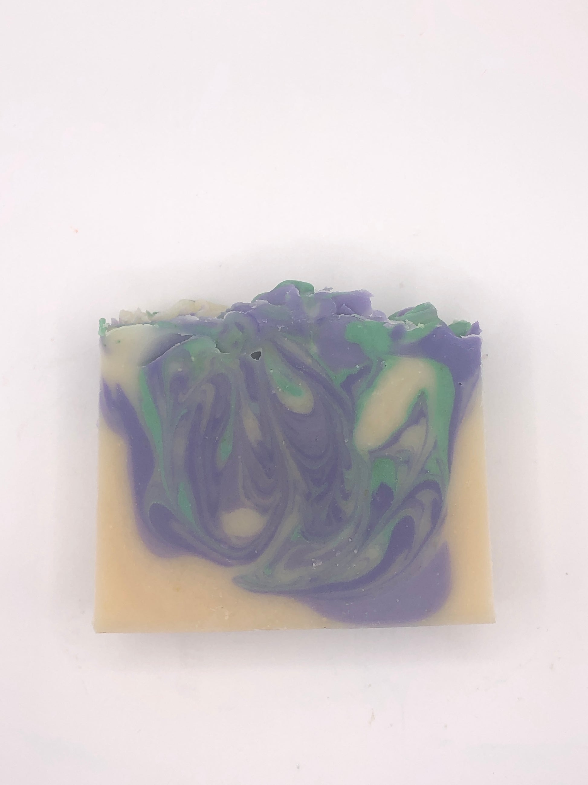 This soap is scented with a light lilac scent- a nod to lilac being the New Hampshire state flower. It also contains swirls of deep and light purple and foliage green- all made with micas and oxides.